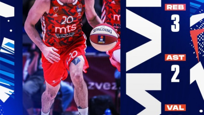 Кошаркаш Црвене звезде Никола Ивановић именован је за најкориснијег играча (МВП) четвртог кола АБА лиге.