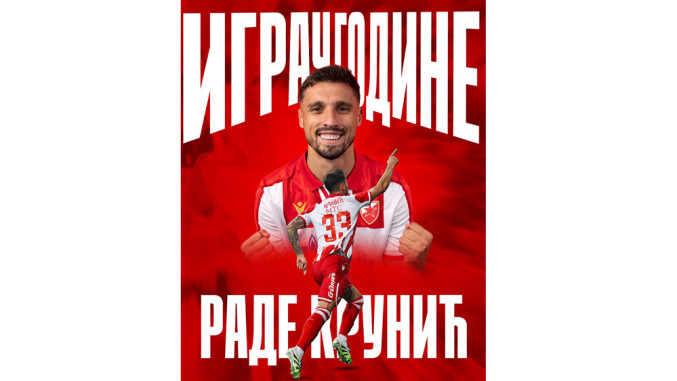 Најбољи фудбалер Црвене звезде по избору саиграча за 2025. годину је искусни везни играч Раде Крунић, саопштио је данас београдски клуб.