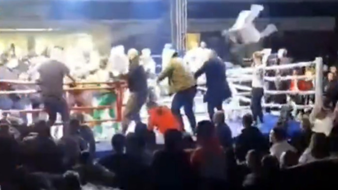 Након што је Новопазарац нокаутиран у рингу избила је општа туча због чега је морала да интервенише полиција. pic.twitter.com/FeQIIDToiE