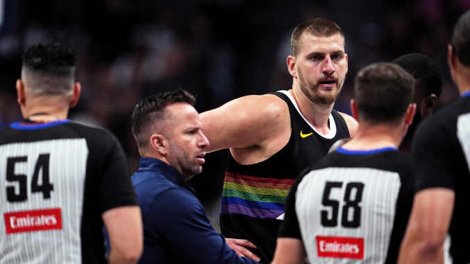Wemby accidentally hits Jokic in the nose. The pair shakes hands afterwards ???? pic.twitter.com/KKV7V6uPcB