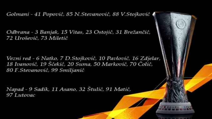 Kako je objavljeno na klupskom sajtu, na spisku su golmani: Aleksandar Popović, Nemanja Stevanović i Vladimir Stojković.