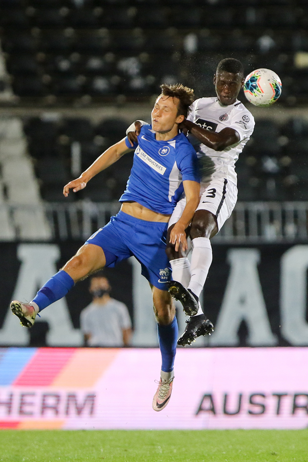 4` Prva prilika na meču, i to vrlo dobra. Sadik je prelepo proigrao Asana u protivničkom šesnaestercu, Japanac nije šutirao iz prve, dovoljno da pruži priliku odbrambenom igraču RFS-a da ga izblokira. Partizan je dobio samo korner, posle kojeg nije bilo opasnosti.