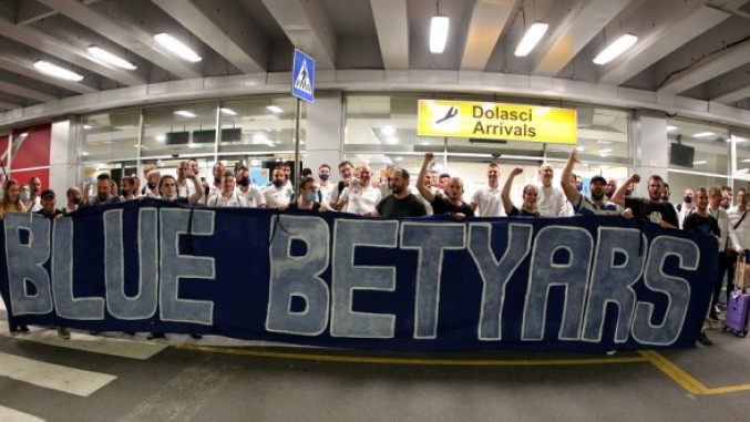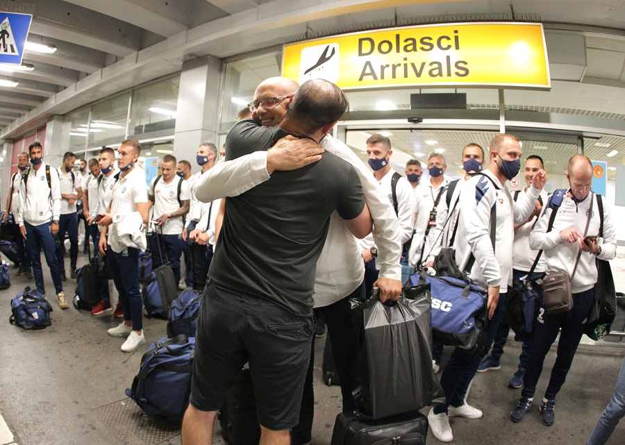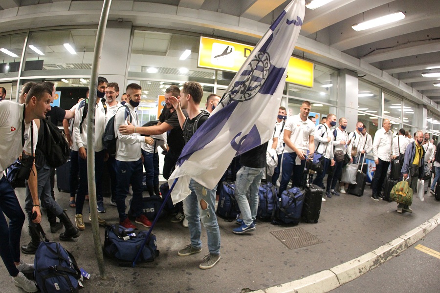 Oduševljeni igrom i uspehom pulena navijači TSC-a, Plavi bećari, na beogradskom aerodromu priredili su doček izabranicima trenera Zoltana Saba.