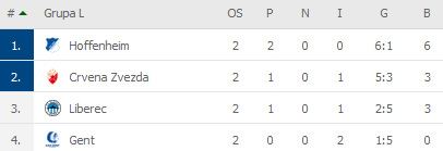 Semafor 2. kola Lige Evrope (L grupa):