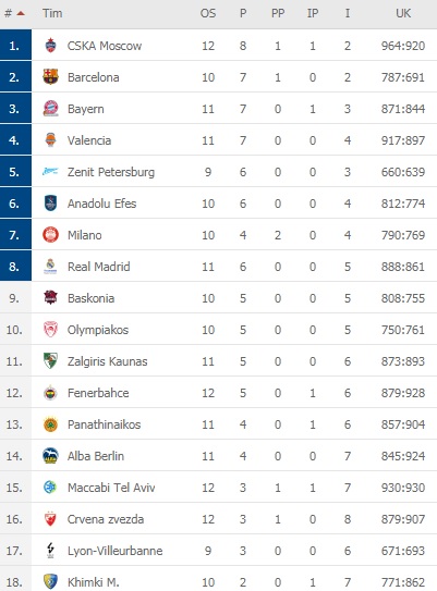 Na tabeli Evrolige obe ekipe imaju učinak od četiri pobede i osam poraza.