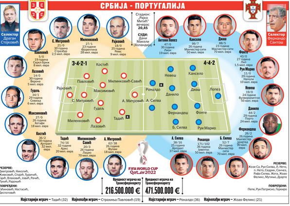 - Za mnoge je Portugalija najjača u Evropi, ima fantastičan individualni kvalitet, aktuelni je šampion Starog kontinenta, njen tim je dobar spoj mladosti i iskustva. Santoš je jedan od najiskusnijih selektora na svetu, vodi maestralno ekipu. Nemojte da pomislite da će nas sve to naterati da se predamo. Pred velikim smo izazovom, znanjem i kvalitetom itekako možemo da pariramo tako jakoj reprezentaciji. Naše dobro raspoloženje je predznak da ćemo biti maksimalno spremni.