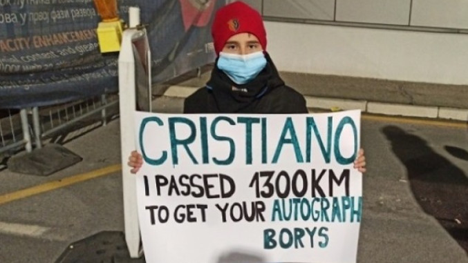 Dečak koji je na beogradskom aerodromu držao transparent s porukom "Kristijano, prešao sam 1.300 kilometara da dobijem tvoj autogram", ispunio je san.