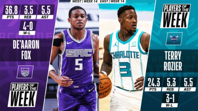 NBA Players of the Week for Week 14 West: De'Aaron Fox of the Sacramento Kings East: Terry Rozier of the Charlotte Hornets