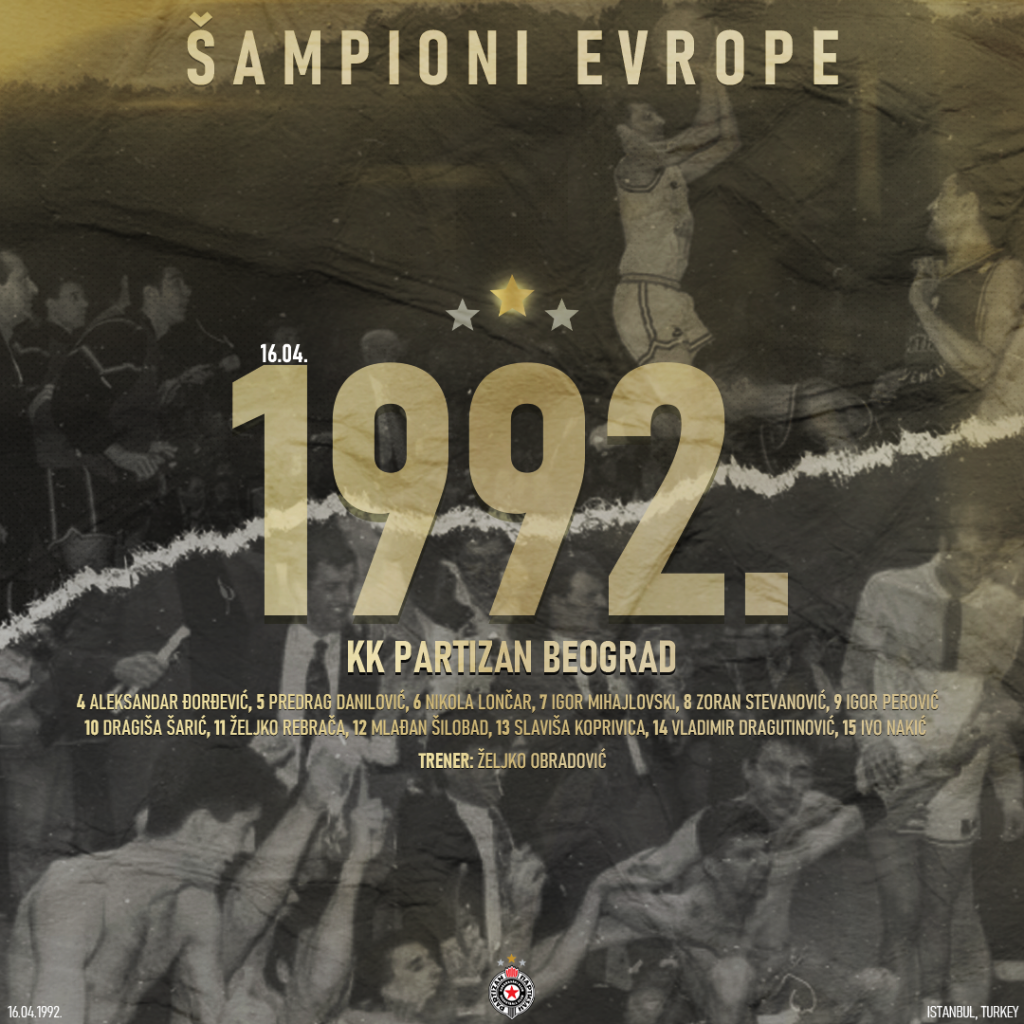 Svim ljubiteljima košarke koji vole i podržavaju crno-bele, KK Partizan čestitao je obeležavanje 29. godišnjice od kada je klub postao prvak Evrope: