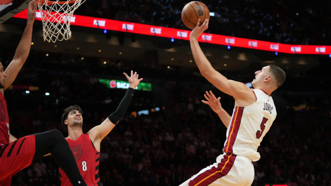 Srpski reprezentativac u dresu Majamija Nikola Jović je za 26 minuta provedenih u igri postigao osam poena i upisao osam skokova i četiri asistencije.