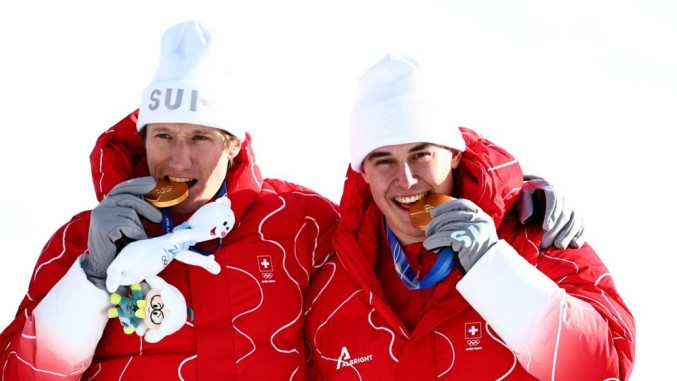 Švajcarski skijaši su ostvarili ukupan rezultat od dva minuta, 44 sekunde i četiri stotinke. Fon Almen je pre dva dana osvojio zlatnu medalju u spustu u pojedinačnoj konkurenciji.