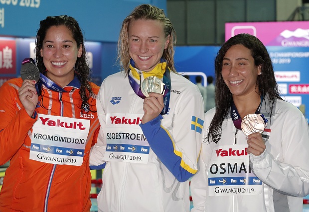 Šveđanka Sara Sjestrem osvojila je treće uzastopno zlato na 50 metara delfin pošto je finale isplivala za 25,02 sekunde i iza sebe ostavila Holanđanku Ranomi Kromoviđojo i Egipćanku Faridu Osman.