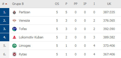 Limož - Partizan 60:82 (25:16, 7:20, 8:20, 20:26)
