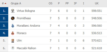 Virtus je u Izraelu pobedio Makabi Rišon 85:79. Miloš Teodosić je za pobednički tim ubacio 18 poena (bez promašaja za jedan i dva), uz šest asistencija. Stefan Marković ukrao je pet lopti, imao po šest asistencija i poena (bez promašaja za jedan i dva), najefikasniji je u timu trenera Aleksandra Đorđevića sa 19 poena bio Džulijan Gembl.