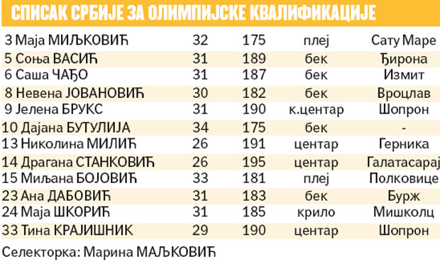 Od te tri, dve ćemo gledati na Olimpijskim igrama. Tačnije, Dajana Taurasi je i sada bila na spisku, ali je zbog problema sa leđima ipak preskočila ovu akciju. Elena Dela Done nije bila ni planirana za turnir u Beogradu. Dok je Maja Mur produžila tajm-aut koji je uzela pre godinu dana. Trenutno je posvećena oslobađanju, prema njenim saznanjima, nepravedno osuđenog sugrađanina.