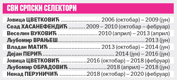 Tako će naša zemlje, od osamostaljenja 2006. godine, deseti put birati selektora muške reprezentacije. Pošto je neuspešno završen još jedan olimpijski ciklus, evidentno je da će Orlovima biti potreban selektor za naredne četiri godine.