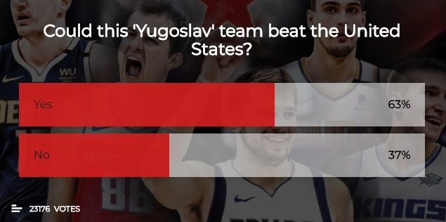 Zanimljivo je da je od skoro 24 hiljade ljudi koji su glasali u anketi na pitanje da li bi tim sastavljen od igrača iz eks-YU mogao da dobije američki drim-tim čak 63 odsto dalo pozitivan odgovor.