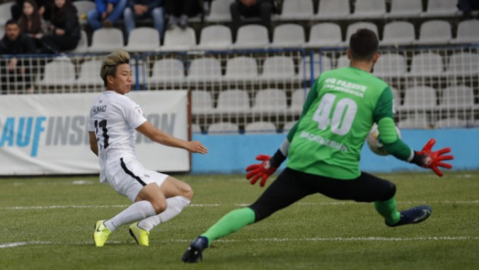 45+2. minut: Ko drugi do internacionalni tandem Natho-Asano. Izraelac je ubacio loptu u prostor, malo sa leve strane, Japanac je utrčao i matirao golmana Radnika - 0:1.