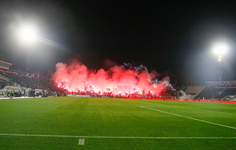 31. minut: Meč je na kratko prekinut zbog bakljade Grobara.